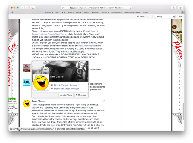 As you can see, Anne has on her actual FB profile stated where she is from, and that is "Battle Creek, Michigan".