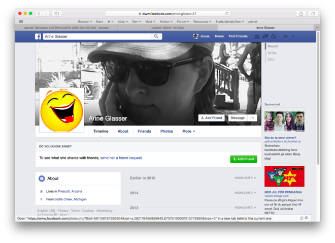 I find it weird that 'Anne Glasser' now has a new FB account: